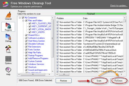 Nhóm Registry: Quét dọn và sửa chữa các khóa bị lỗi trong Registry! Editor